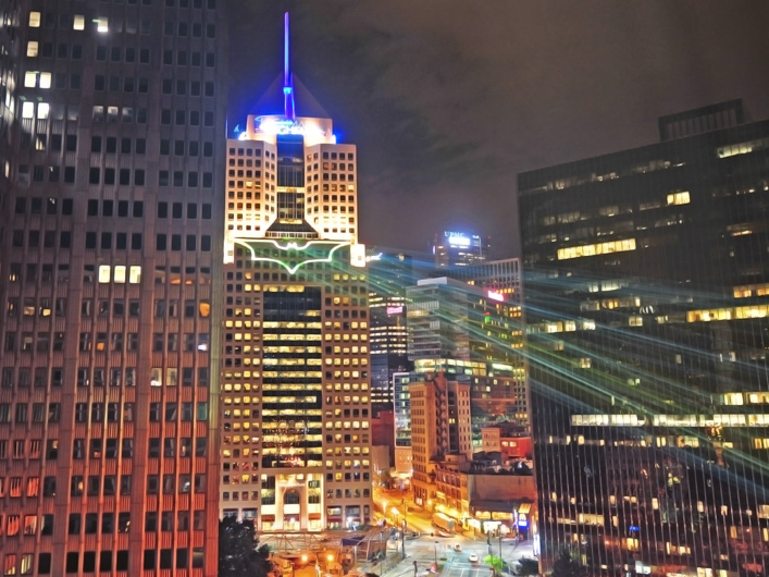 The image was projected on Fifth Avenue Place downtown for two nights in July of 2011 as the production of Dark Knight Rises moved to the Pittsburgh area. As drivers emerged from the Fort Pitt Tunnel they were greeted by the Bat Symbol logo high atop one of the tallest buildings downtown. “We feel very welcome, even down to the bat symbol that was displayed last night,” Batman producer Emma Thomas stated at a pre-filming news conference the day after the display.