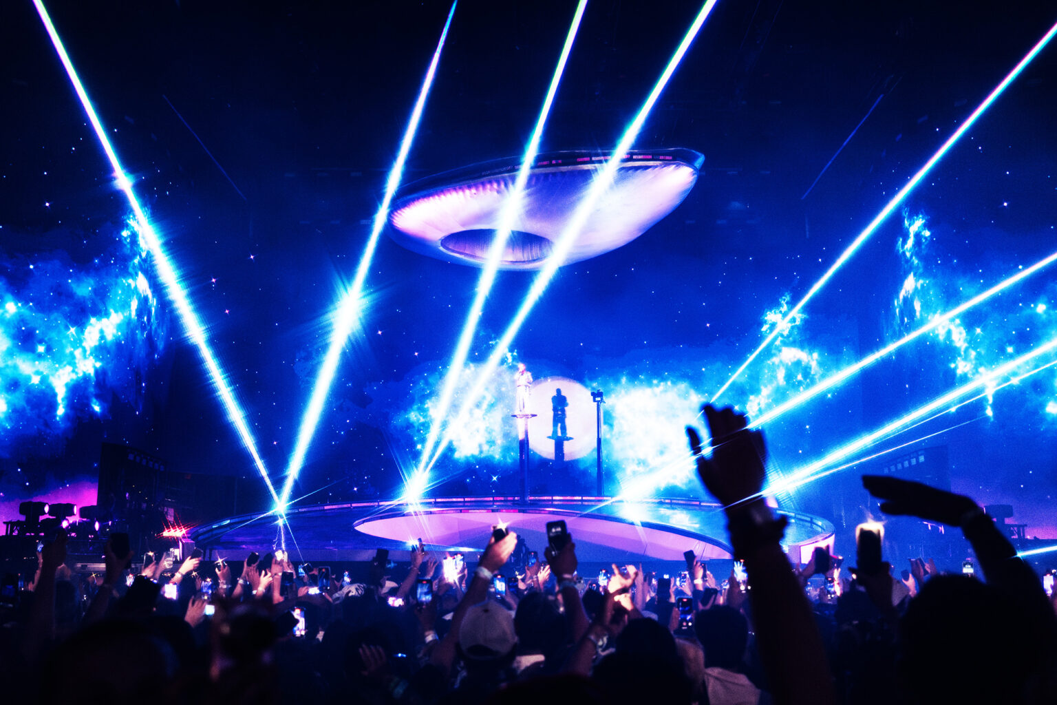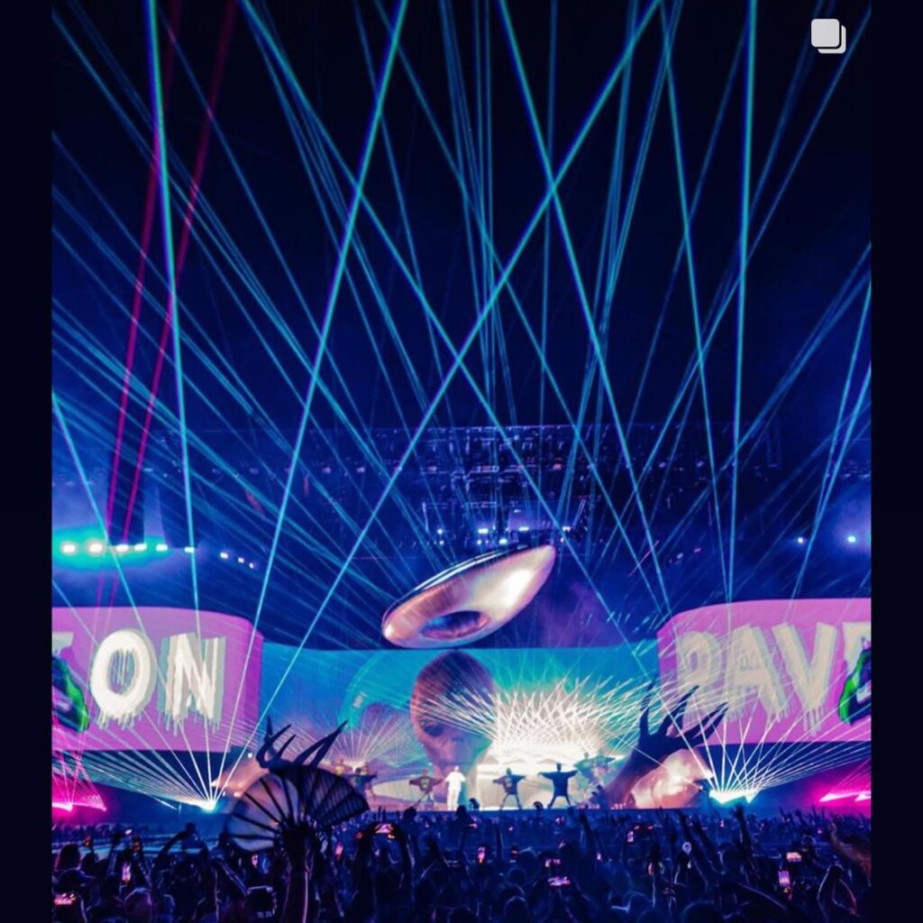 Step into the vibrant world of J Balvin’s Coachella main stage performances where Lightwave International elevated the show with a massive complement of Lightwave Prism Series 60W RGB lasers, delivering over 2000 watts of sharp, synchronized laser power. This video highlights key songs where our lasers transformed the desert sky into a pulsating, intergalactic experience, complementing the UFOs, giant robotic aliens, and a surprise Will Smith cameo. The lasers synced perfectly with hits like “Roho”, “La Cancion” and “In Da Ghetto,” amplifying The Squared Division’s bold design and choreography.