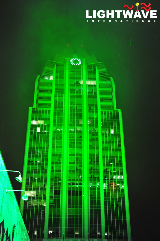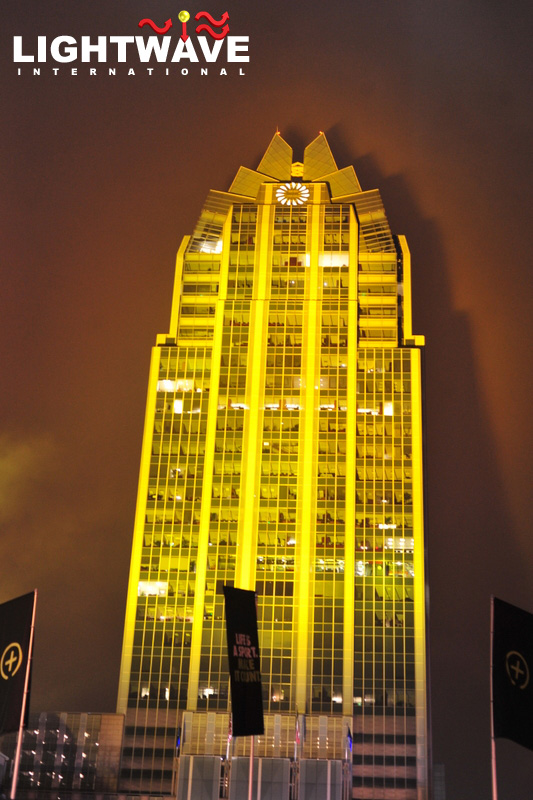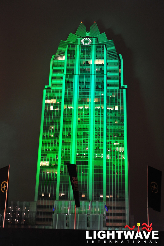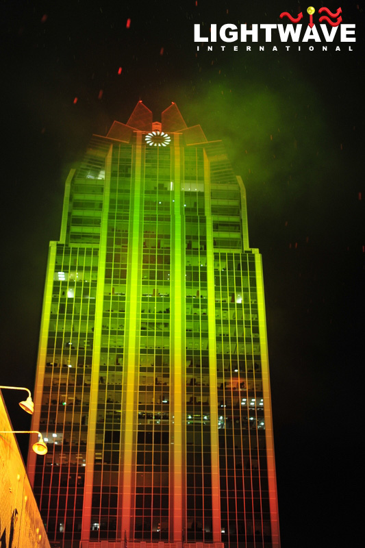 Using the Frost Bank Tower in downtown as a canvas, Lightwave washed the building in vibrant colors matching the hues of the FuelBand LEDs. The display was visible for miles around, including from the nearby NikeFuel Lot, and lasted for a full week of the festival.