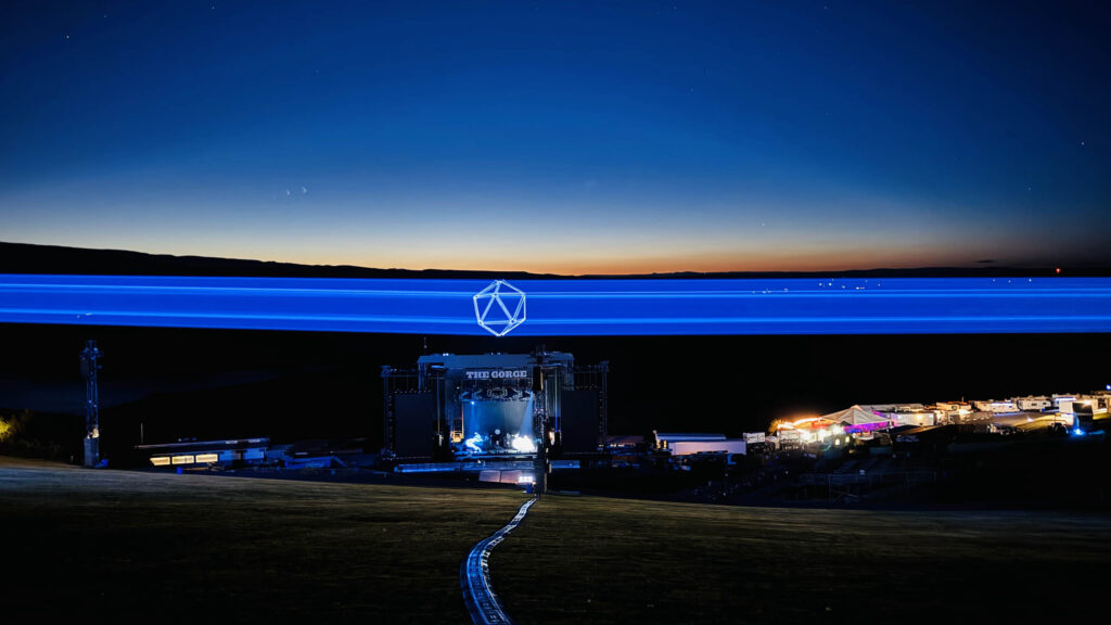 Relive the breathtaking multi-kilowatt laser display from ODESZA’s The Last Goodbye Finale at the Gorge Amphitheatre, July 4-6, 2024. Lightwave International powered the visual spectacle with over 5000W of Lightwave Prism Series RGB lasers, including our 270W RGB centerpiece. A grand scale projection measured in MILES painted the entire Columbia River Gorge canyon walls using a canvas 10 miles wide, and up to 10 miles away from the projector sources. The visual result is surreal and implausible, at moments creating a holographic hovering ODESZA icosahedron above the main stage.