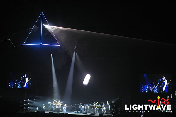 The prism was controlled by two redundant Lightwave DMX laser media servers and a custom grandMA definition. This allowed for rapid programming in a familiar lighting console environment. The system was designed for rapid tour deployment, and thus all the electronics and lasers rode inside the metal housings for the duration of the tour. Highly rugged and reliable solid-state technology was essential to this time-saving step, and of course reduced the power budget from many hundreds or thousands of kilowatts to a few thousand, while also negating the need for any water cooling.